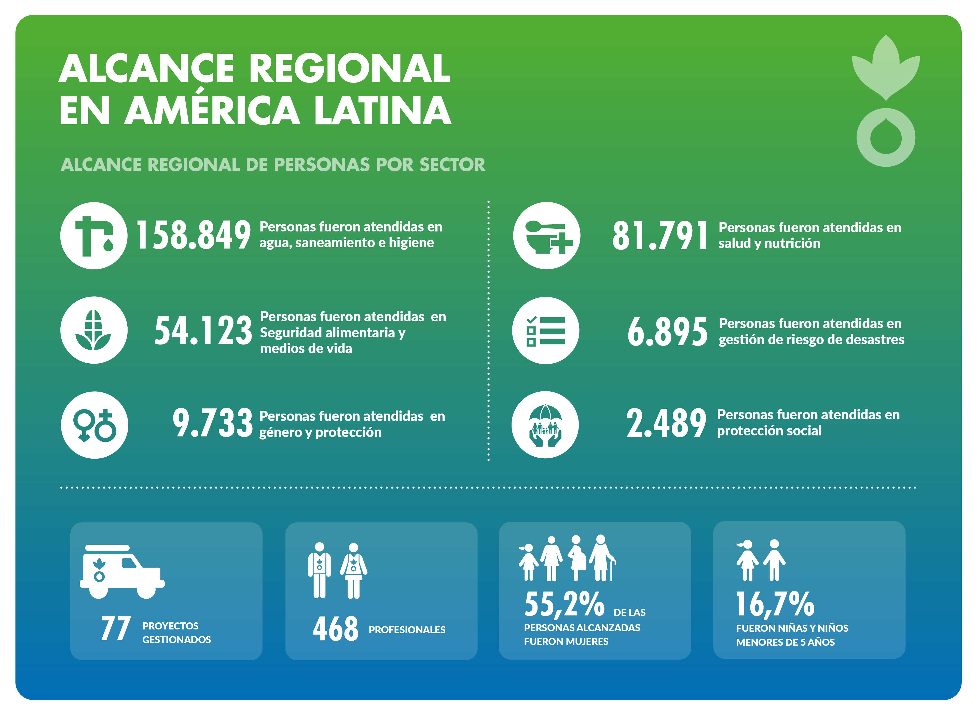 En este contexto desafiante, Acción contra el Hambre alcanzó a 243.519 personas en Centroamérica, Colombia, Perú y otros países, integrando respuesta inmediata y soluciones de resiliencia.